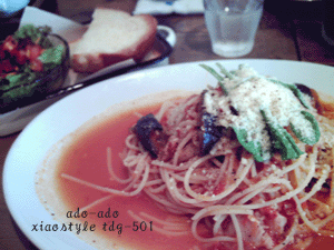 ↑今日のランチはパスタ。ピリリと辛くて最高☆