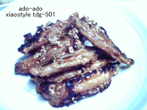 豆板醤、お醤油、お酒、ニンニク、ゴマを混ぜたタレにからめるだけ。